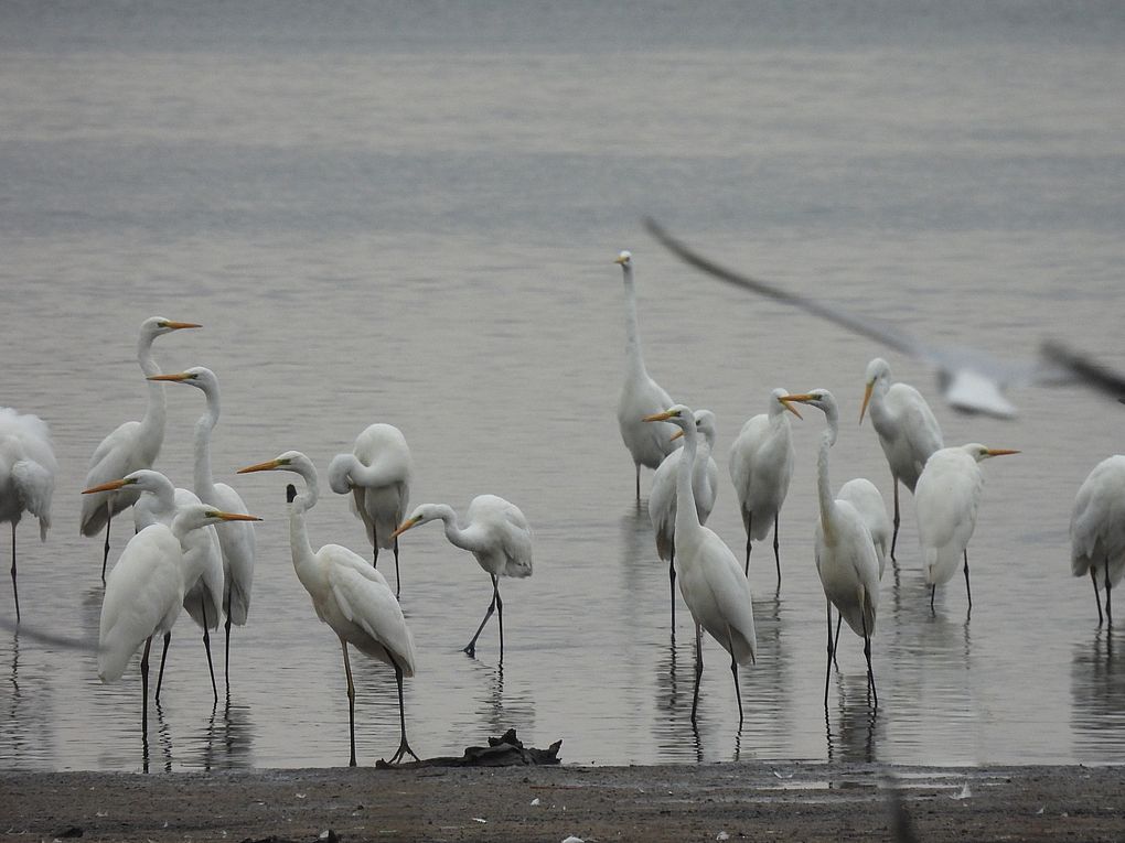 Использованы фото Александра Винчевского (орланы-белохвосты, большие белые цапли, бакланы, лебедь-кликун и малый лебедь, семья кликунов) и Светланы Альшевской.